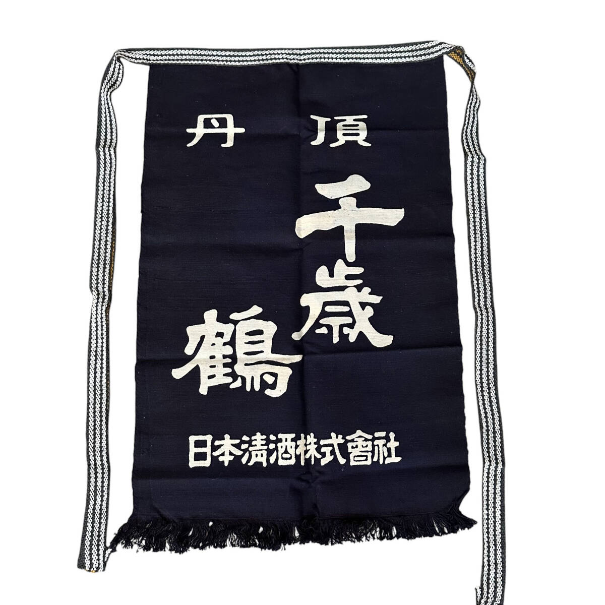 - T7-453 未使用 前掛け 日本清酒 千歳鶴 寿みそ 両面プリント 帆布 エプロン リメイク 非売品 昭和レトロ