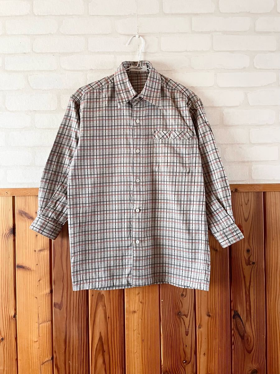 > 日本製 HOMME LIBRE メンズ 七分袖 シャツ チェック Sサイズ グレー系 カジュアル 綿 100% コットンシャツ 古着 cotton shirt ⑫7