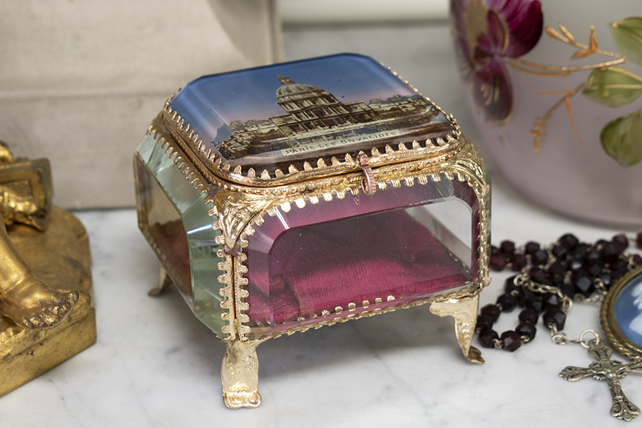 厚いガラスに真鍮装飾がついた、ナポレオン三世様式のボックス。