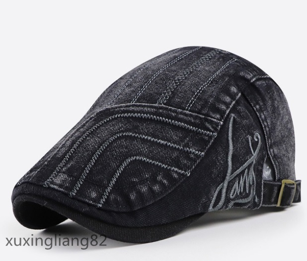 - 新販売 デニム帽子 ハンチング ベレー帽子 メンズ 通気性抜群 ゴルフ サイズ調整 ウォッシュ ユーズド加工 黒