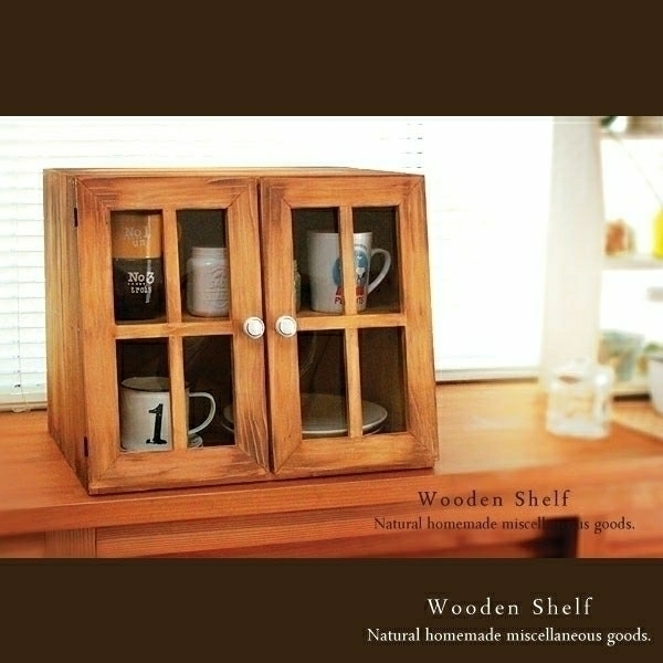 - [送料無料]カフェ風♪ アンティーク加工 ショーケース シェルフ 木製 棚 扉付き