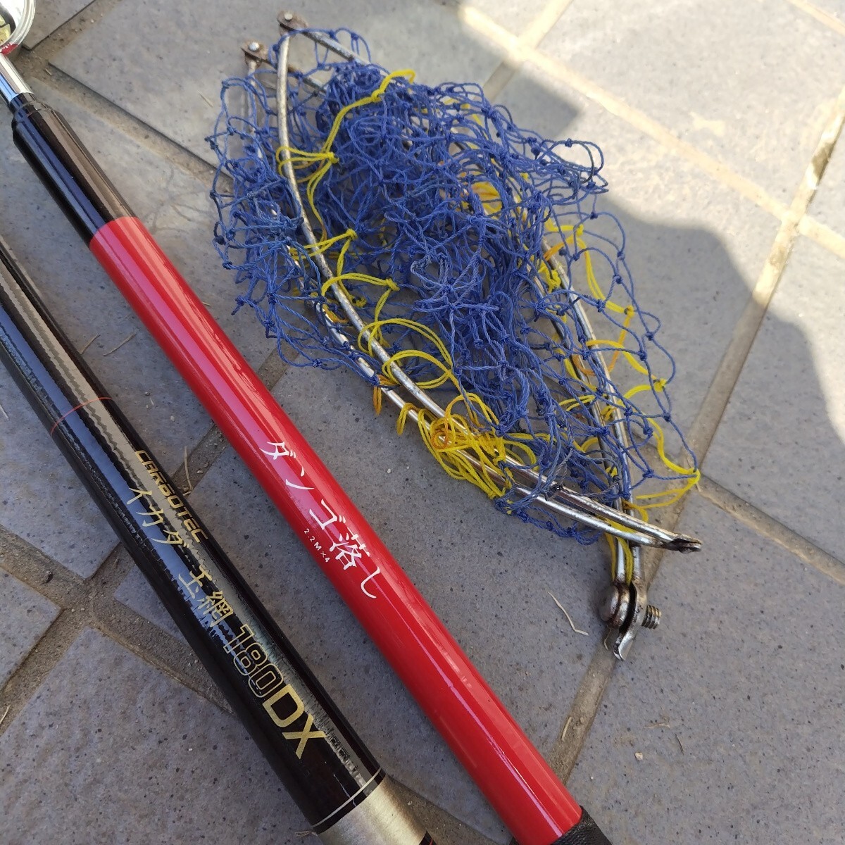 - イカダ玉網180DX RYOBI イカダチヌ用ダンゴ落とし 大様印 37cm玉網 色々3個で!! (中古)