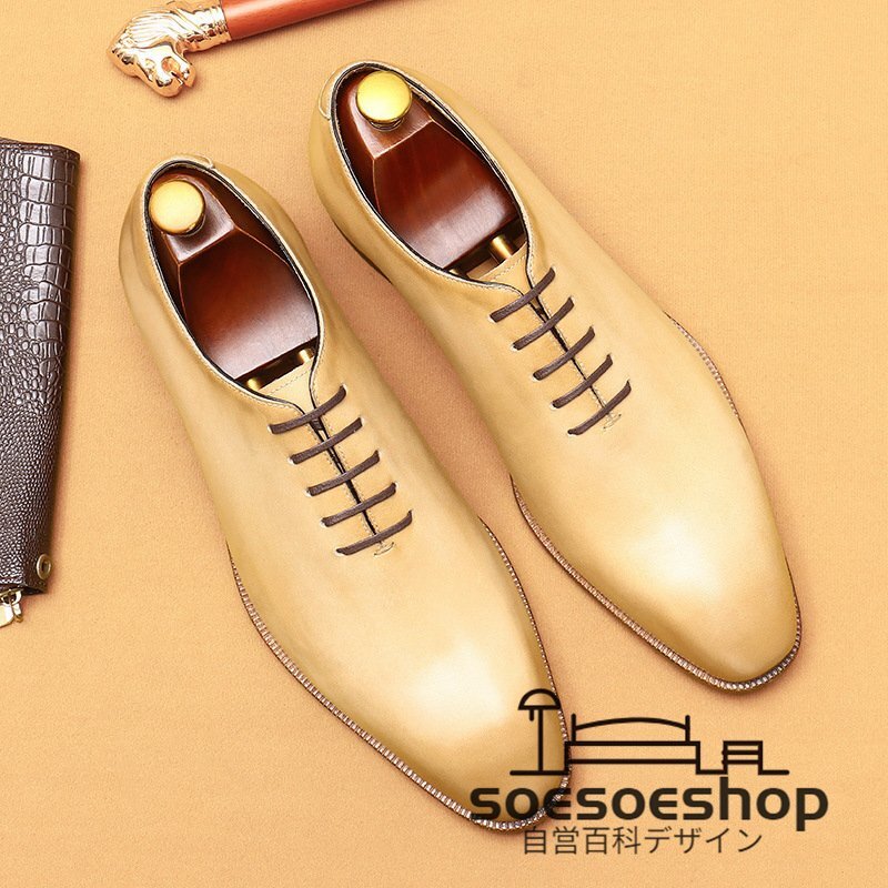 - ビジネスシューズ メンズ レザーシューズ 本革 職人手作り 紳士靴 牛革 イギリス風 フォーマル 新品 極美品 宴会 黄色 24cm~28cm