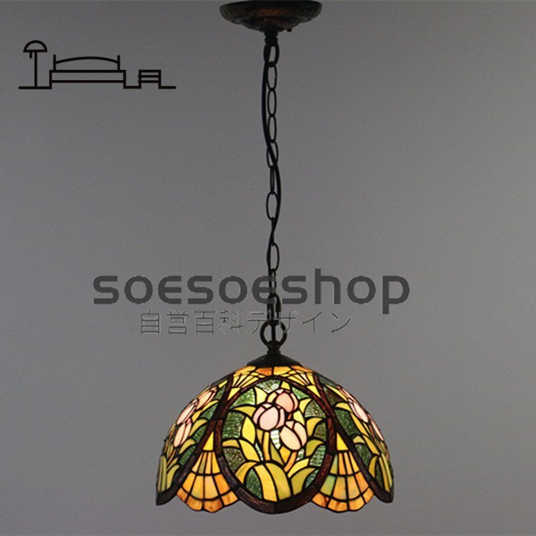 - 人気美品☆シャンデリア ウォールランプ ステンドグラス ステンドランプ 天井吊り型ランプ 花柄 ティファニー技法 工芸品 照明