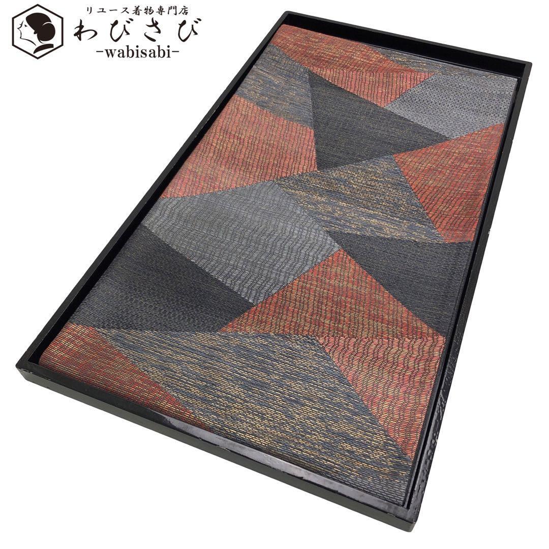 - 袋帯 多角形織模様 金糸 青墨色 O-4753 着物 きもの kimono 和服 和装 中古 リサイクル着物 【送料無料】