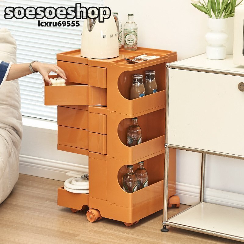 - サイドテーブル キャスター付き 引き出し90°回転 3段/引き出し4個 収納 ソファーサイド ベッドサイド 防水 家具 デスク下 ホワイト 6色