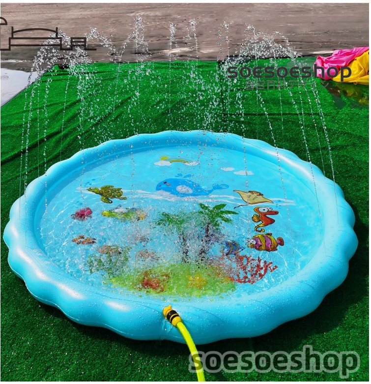 - 噴水マット 空気入れ 直径170cm 噴水プール 子供プール 家庭用 水遊び おもちゃ ビニールプール 青 庭シャワー キッズプール