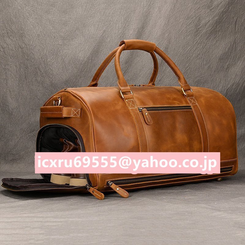 - 超大容量 本革 牛革 メンズ ボストンバッグ トラベルバッグ 3泊 4泊 旅行鞄 ダブルチャック ゴルフバッグ 2WAY ボルドー