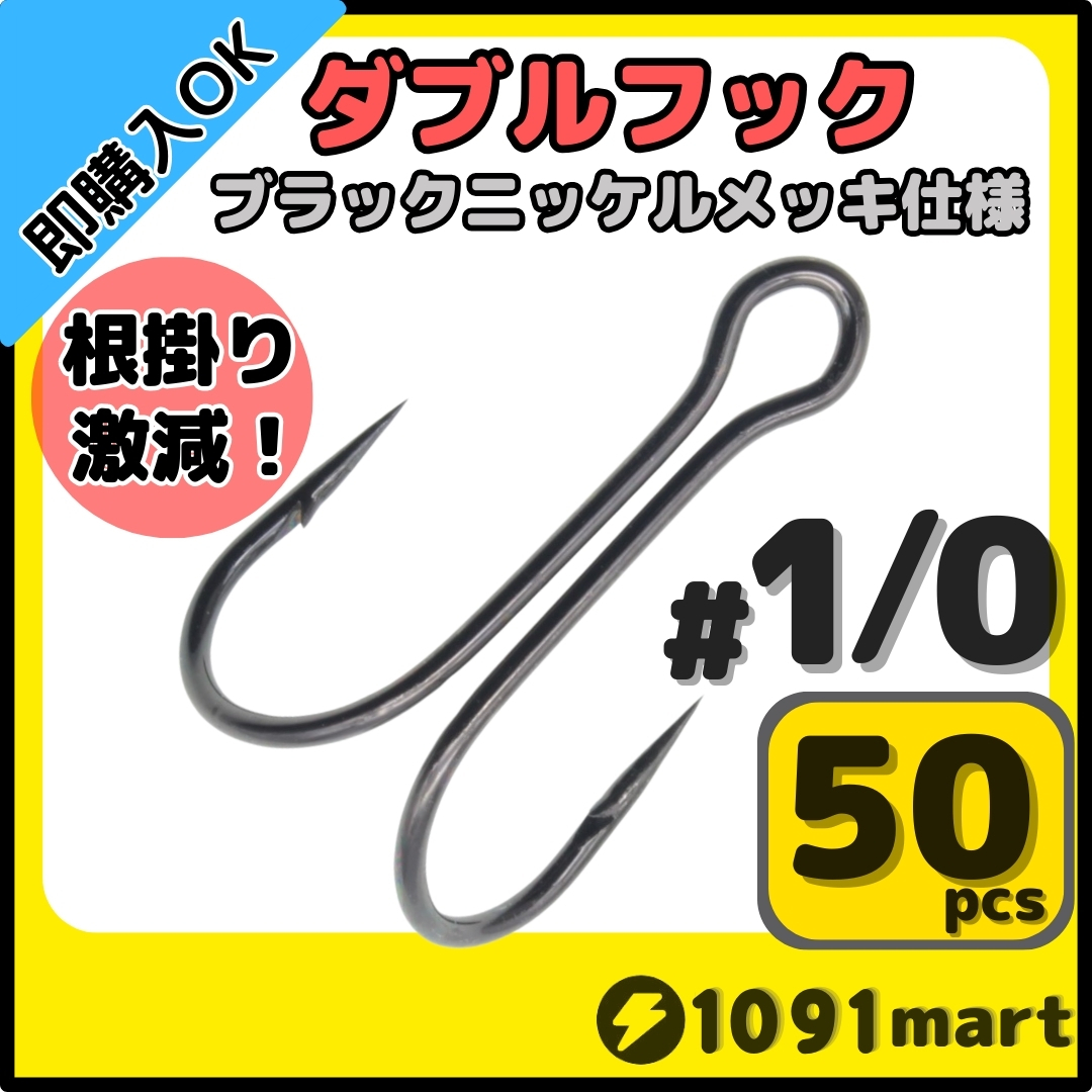 > 【送料180円】高炭素鋼 ダブルフック ブラックニッケルメッキ仕様 #1/0 50本セット ソルト対応 メタルバイブ バイブレーションに!