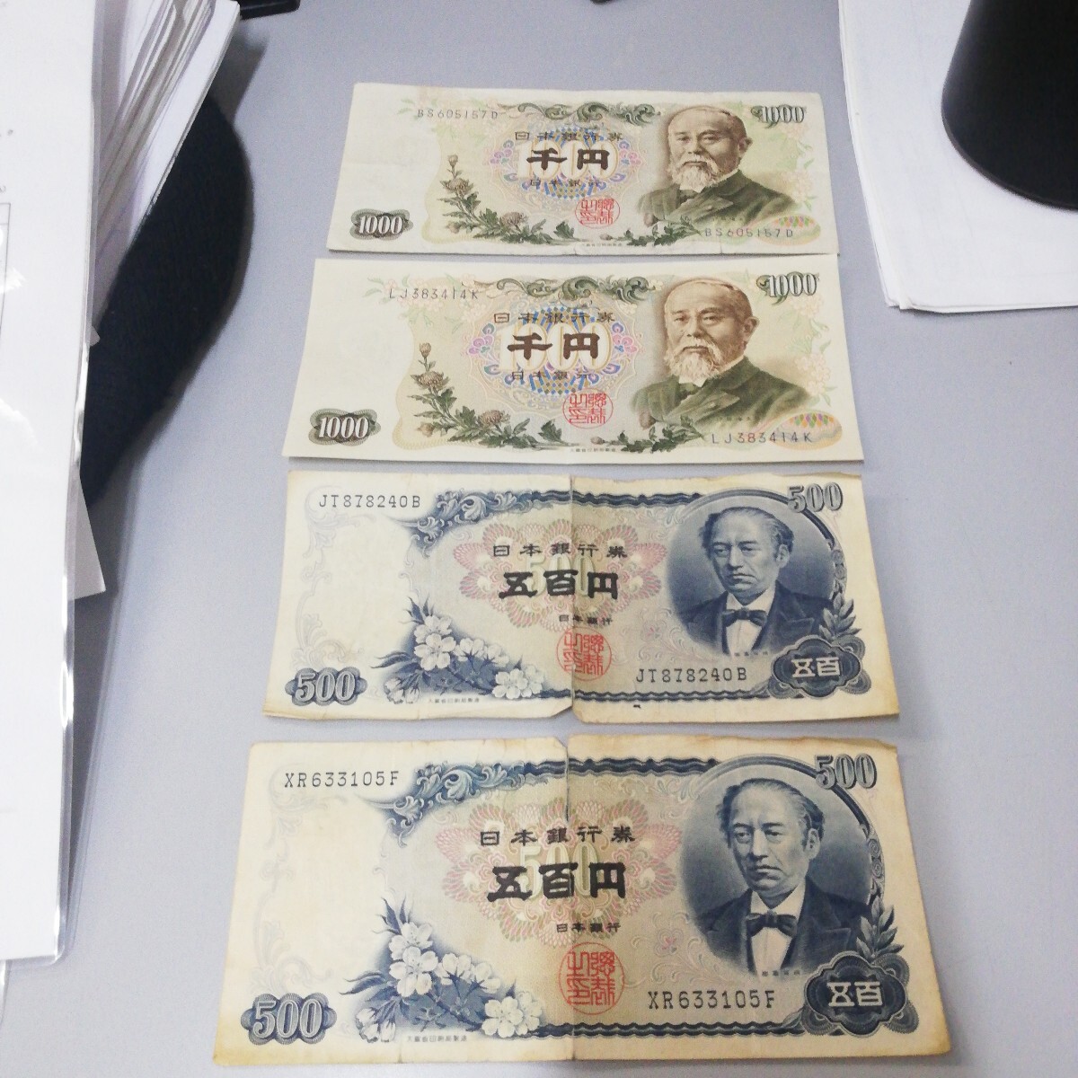 - 旧紙幣 1000円札2枚 500円札 2枚