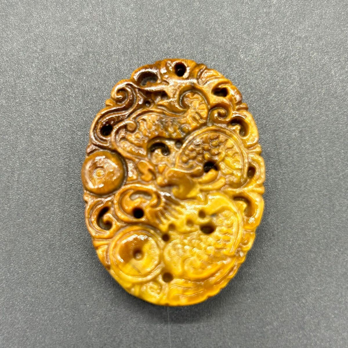 - タイガーアイ 龍彫刻 虎目石 龍彫り ペンダントトップ 中国美術 5712