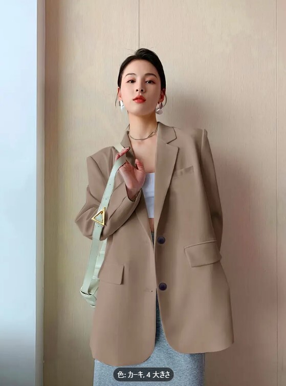 - ジャケット レディース 上質 Vネック スーツ ロング ボタン留め ポケット 着せ 無地 シンプル 大人(サイズ:L)
