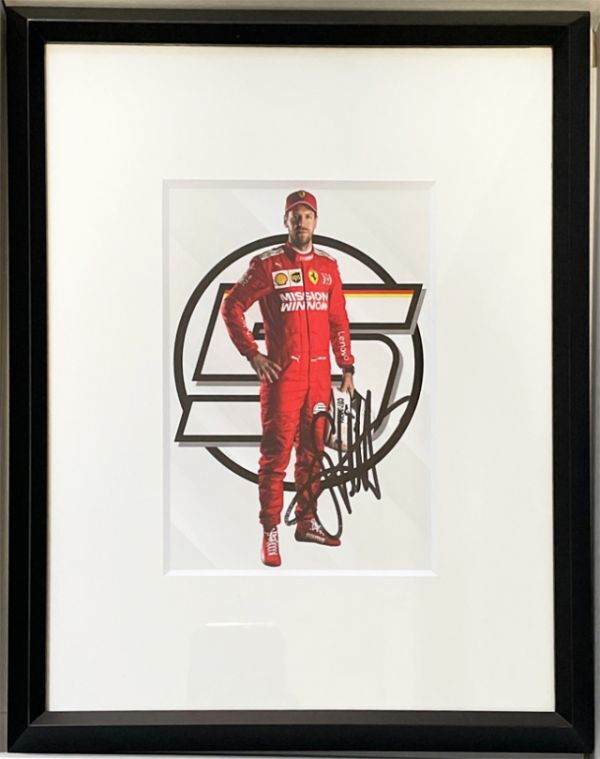 > F1チーム フェラーリ S.ベッテル直筆サイン入 フェラーリ 2019年度 ドライバーズカード(額装品) ワールドチャンピオン