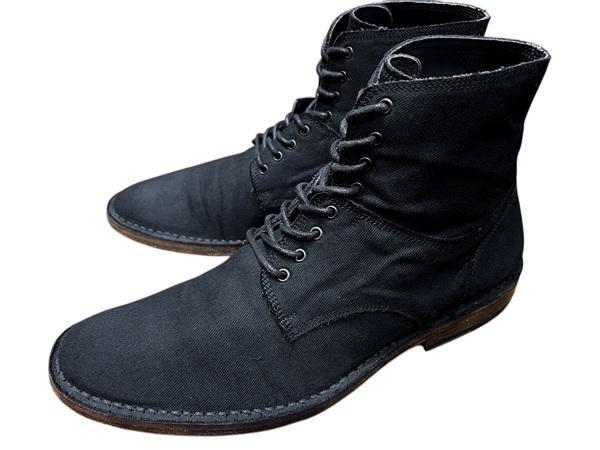 > 高級 良品 レア MARC JACOBS マークジェイコブス キャンバス素材ブーツ イタリア製 黒 ブラック US7 25cm ハンドメイド ハイブランド 革靴