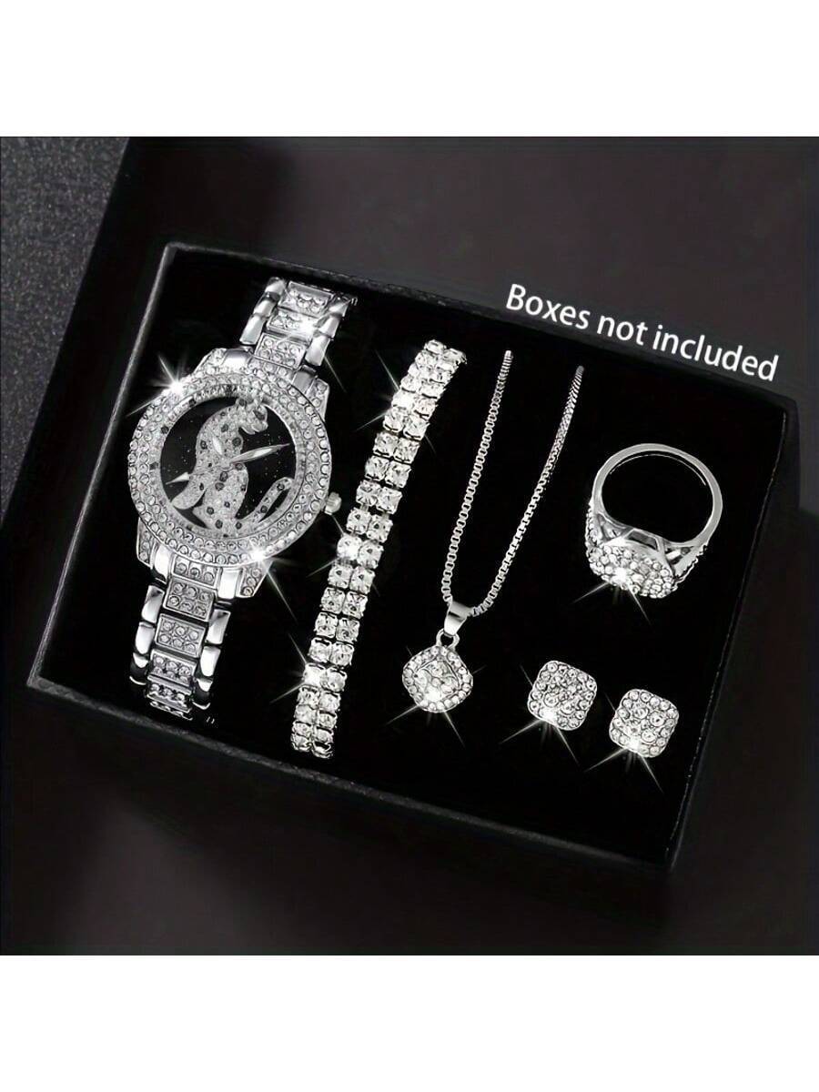 - 腕時計 レディース セット 7点セット エレガントな石英時計 アクセサリー付き、丸型レディース腕時計、ネックレス、ピアス、リング&