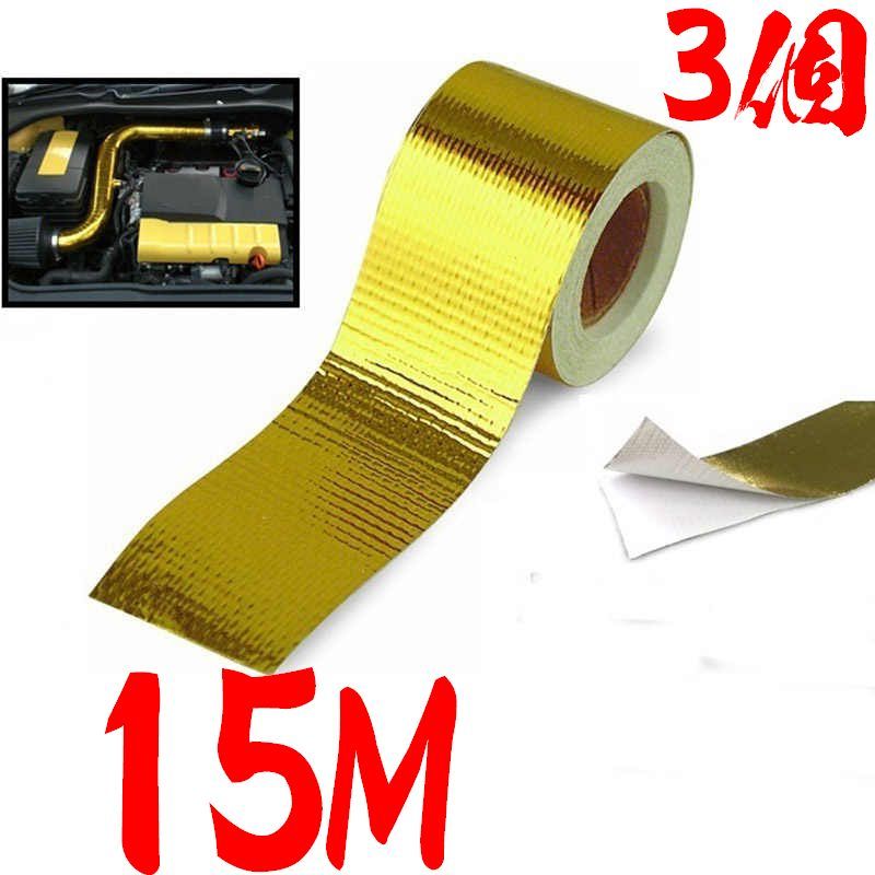 - 【送料450円】15M 3個 ゴールド サーモ テープ 遮熱 断熱 E92E93F01F07F10F11F20F30F32 エキマニ インマニ マフラー サーモシート C26