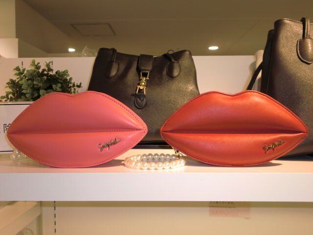 - ★値下げショッパー付★新品★激可愛いリップ型ポーチ兼クラッチバッグパールチェーン付即決リップブラシー★パーティーバッグ★切手★