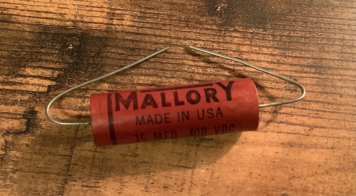 ビンテージMallory コンデンサー 新品です。ギターではテレキャス等の純正数値が.1のシングルに最適です。その他電子部品向け。MalloryはCornell、Spragueと並ぶ良質なブランドです。バイト感が強く、荒々しいワイルドなひずみが特徴、レンジが広く良質です。----------------------------------------------------------------