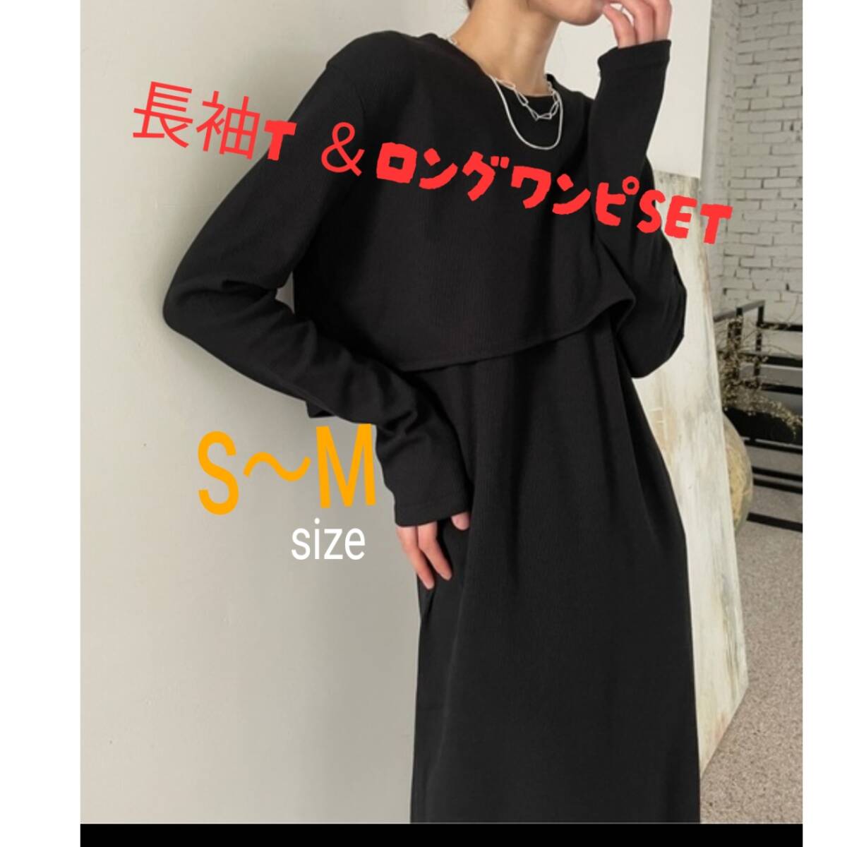 > v9★Mサイズ★送料無料★Rope Picnic 9889円★ニットベスト付 ロング丈 長袖ワンピースセットアップ コンビワンピース マキシ丈 ブラック黒