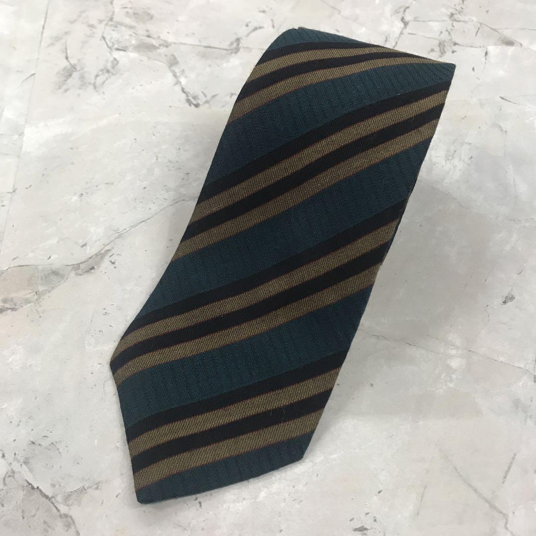 - エルメネジルドゼニア ネクタイ 緑 ストライプ シルク ウール【n462】