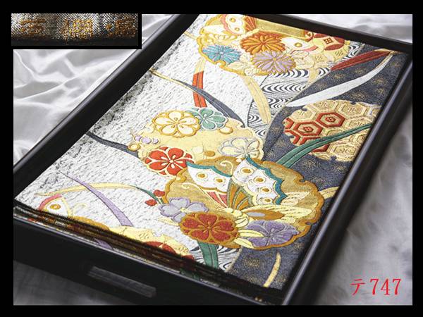 > 蔵【テ747】西陣逸品 夢爛漫 振袖可 雪輪花蝶紋 華やぎの品格 正絹純金糸六通高級美術袋帯 ◇検◇簪着物名古屋帯和装小物帯締め