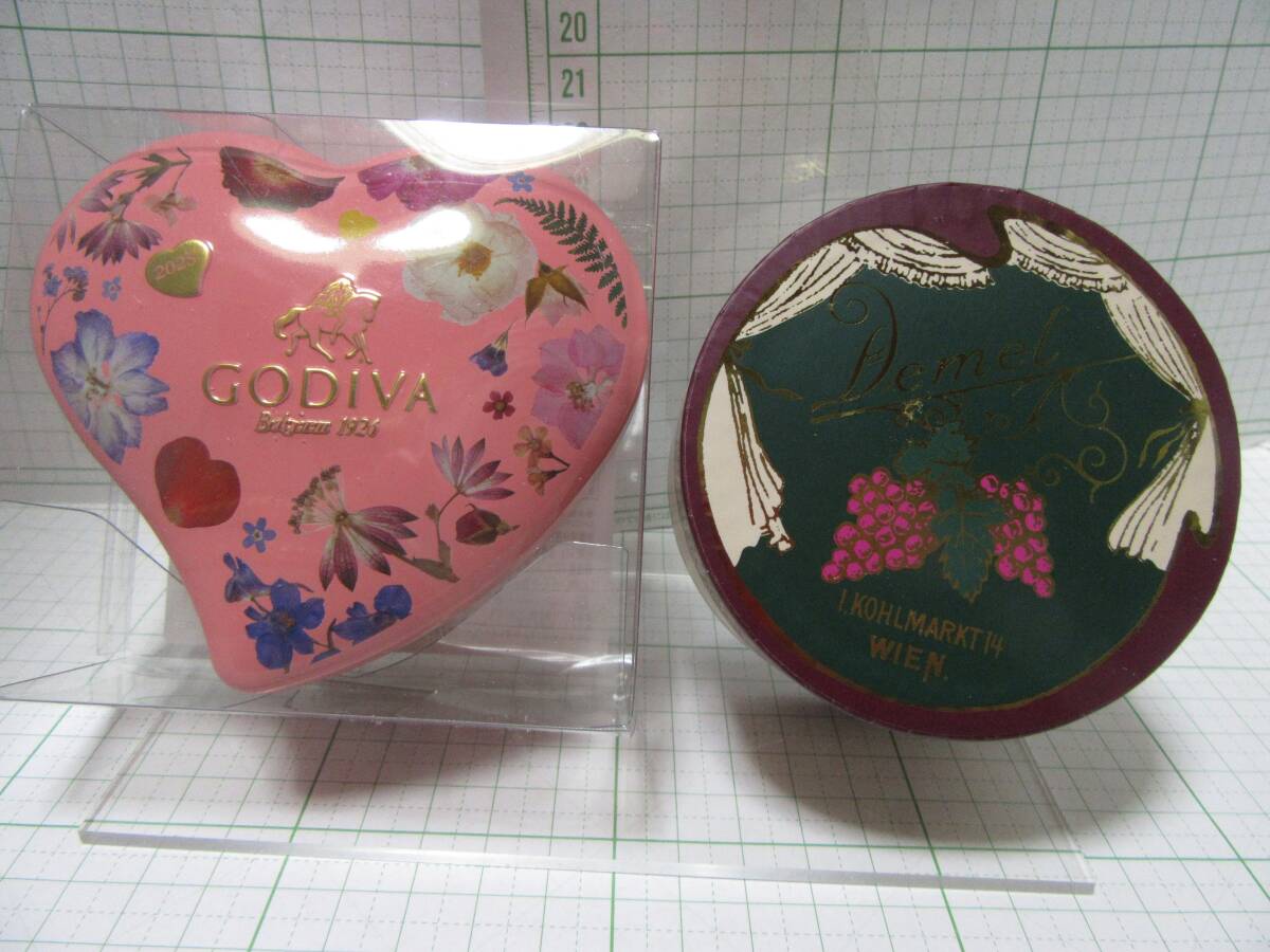 - 注意空缶・空箱◆ゴディバ・GODIVA ハート型空缶、デメル・Demel i.kohlmarkt14 wienの2個、空箱、空缶 自宅保管:I14