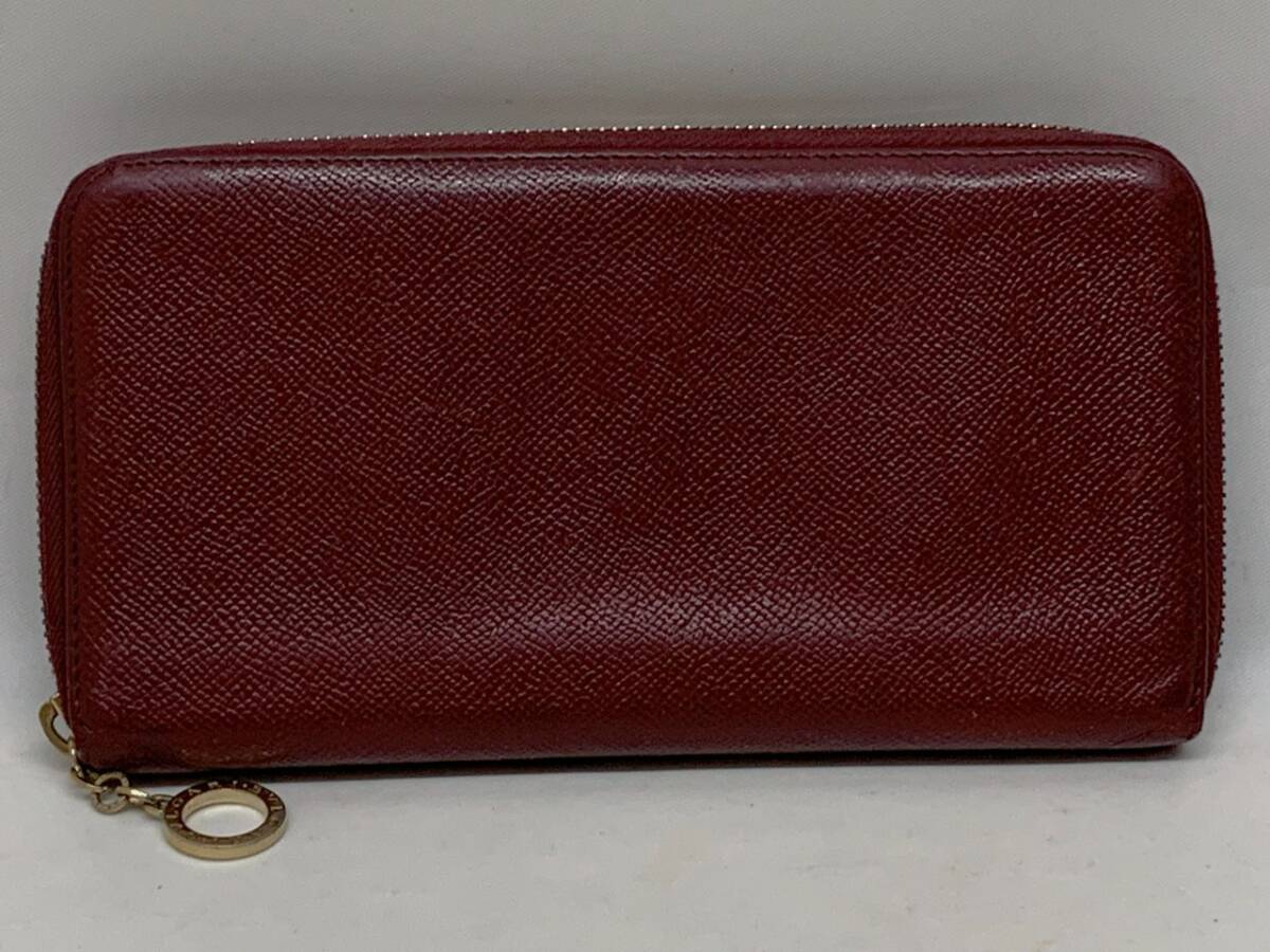 - BVLGARI ブルガリ レザー ラウンドファスナー 少し大きめ 長財布 レザー ダークワイン×ネイビー 12時間以内に発送