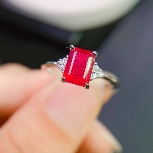 > 値下げ交渉歓迎、鑑別付き、天然ルビーリング、5×7mm、925シルバー 最初の入札者様は開始価格で購入可能 kk