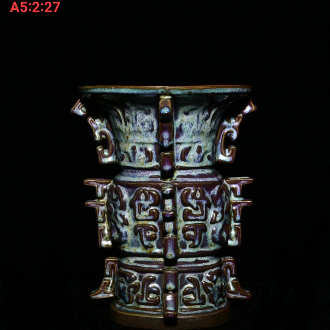 - 旧藏 宋時代 古陶磁器 鈞窯 出戟尊 賞物 文案置物 極細工 古賞物 古美味 東洋彫刻 時代物 骨董 中国古美術