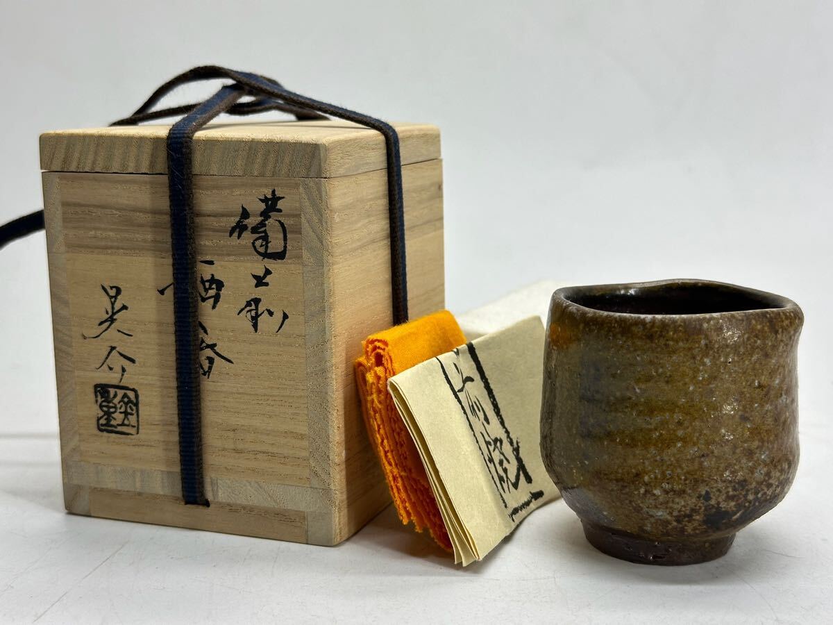 - 金重晃介 備前 酒呑 岡山県無形文化財 ぐい呑 共箱 共布 栞 父:金重陶陽