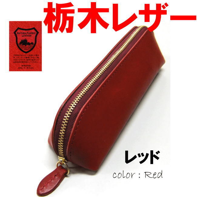 - レッド 栃木レザー ペンケース 日本製 本革 289 筆箱 メンズ レディース