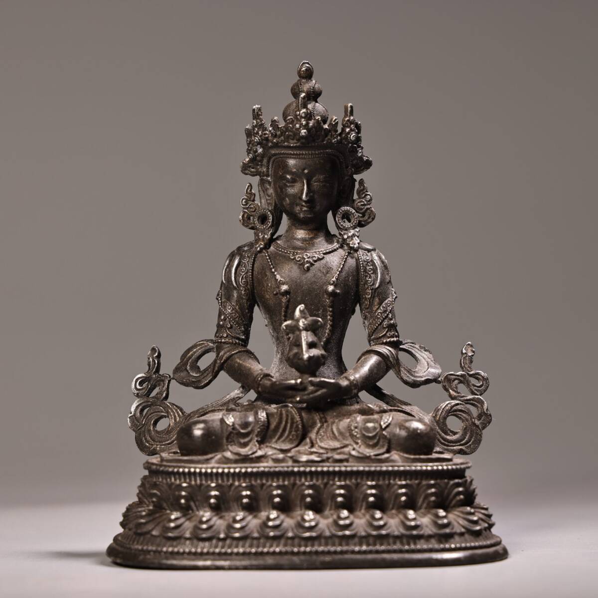 - ▽鴻▽ 銅製 銀鍍 長寿仏 置物 古賞物 中国古玩 中国古美術