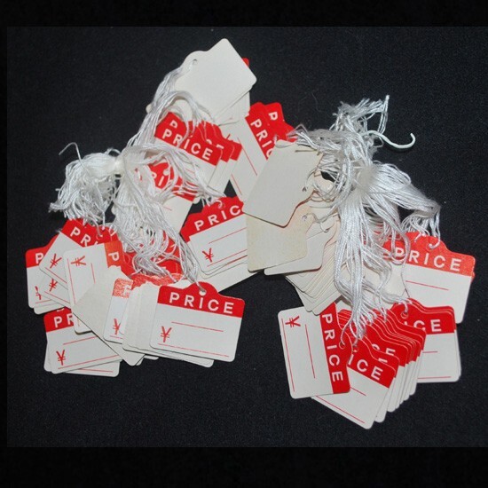 > ●2193● 昭和雑貨 ◆ レトロ 紐付値札「 PRICE ¥ / 3 . 2 × 2 . 2 cm 」 100 枚程で ◆ 細かな洒落心、昭和の趣きを演出!