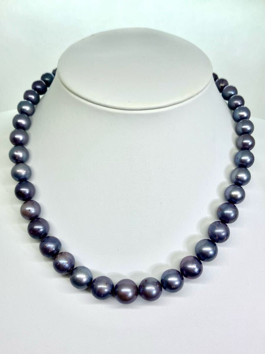 - 【新品】黒蝶真珠染めネックレス/大ぶり/グレー/南洋真珠ネックレス/ボリューム/グラデーション/クロチョウ/タヒチパール
