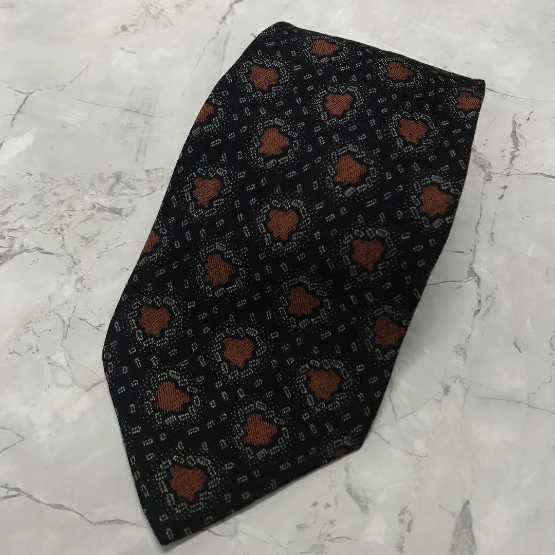 - ジョルジオ・アルマーニ ネクタイ 黒×白×橙 花柄 幾何学模様 絹【n491】