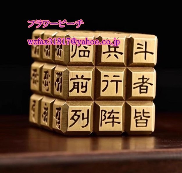 - 魔除け 厄払い 厄除け キューブ 九字真言 真鍮製 ミニ 持ち歩く 臨兵斗者皆陣列在前行