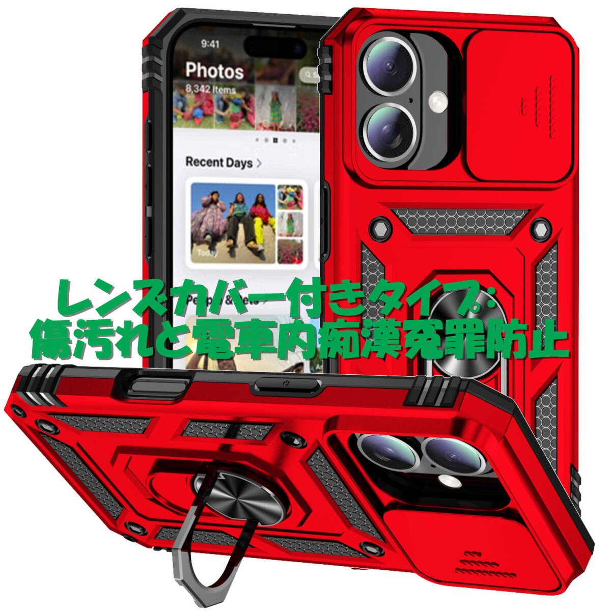 - G 赤 iPhone 16 Plus ケース 本体 カバー 指リング 画面 守る 保護 アイフォン 米軍 衝撃 頑丈 スタンド ホルダー Apple 超強 アップル