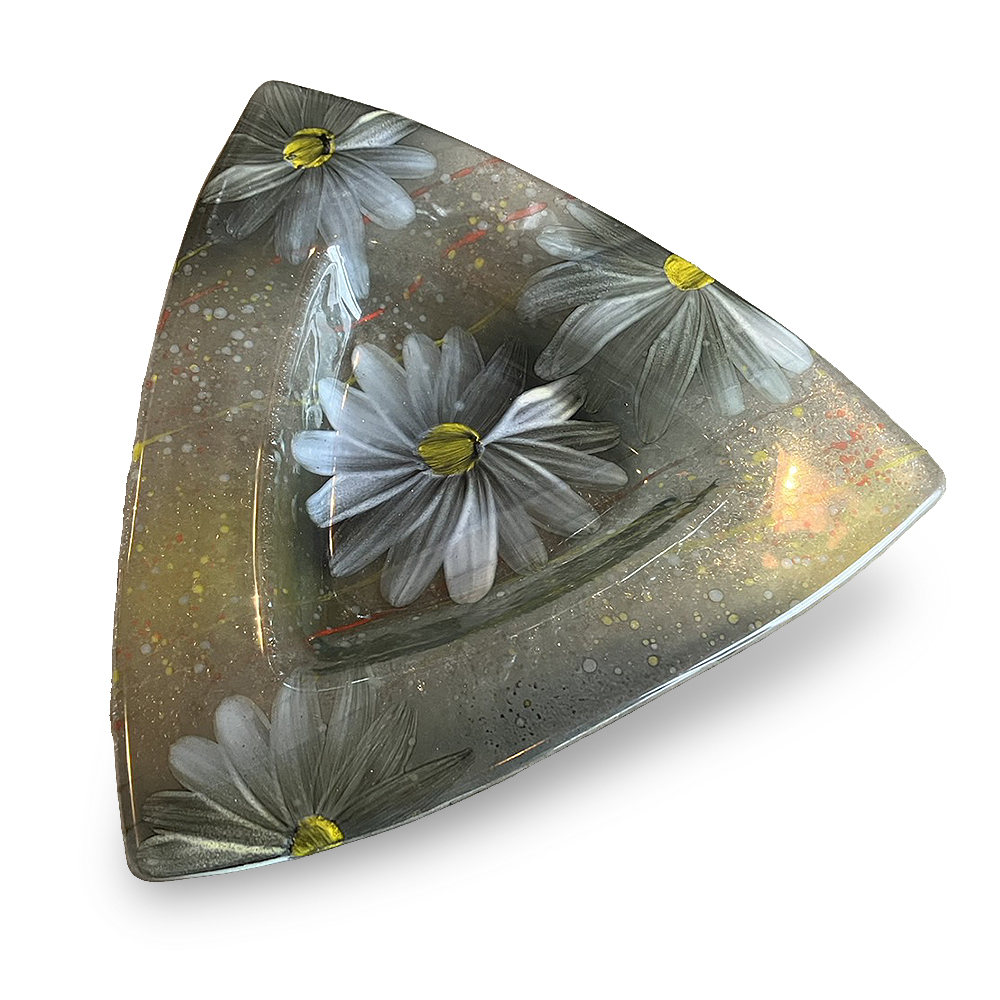 - 【ヴィンテージ フラワーデザイン ハンドペイント ガラスプレート】検:レトロビンテージインテリア置物食器皿オブジェ