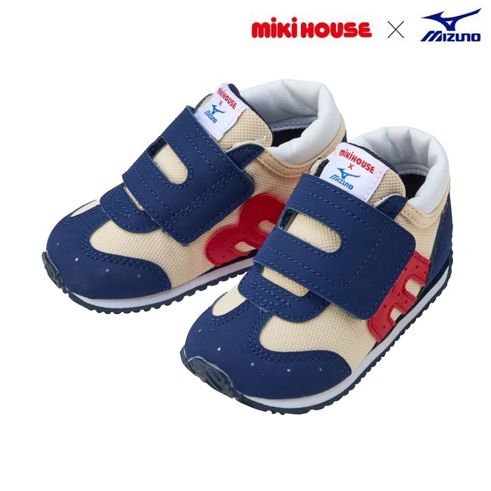 - 即決です!【ミキハウス】新品未使用♪14cm mikihouseミズノコラボ セカンドベビーシューズ ストラップ スニーカー 靴 男の子 女の子 紺×白