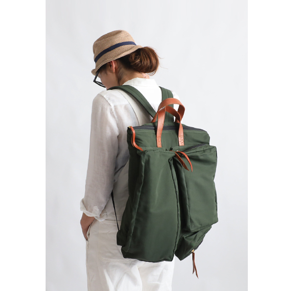 - 送料無料 新作 Lサイズ 軽量 収納上手な マチ付き 多ポケット リュックサック クッション入ナイロン 革レザーP18C