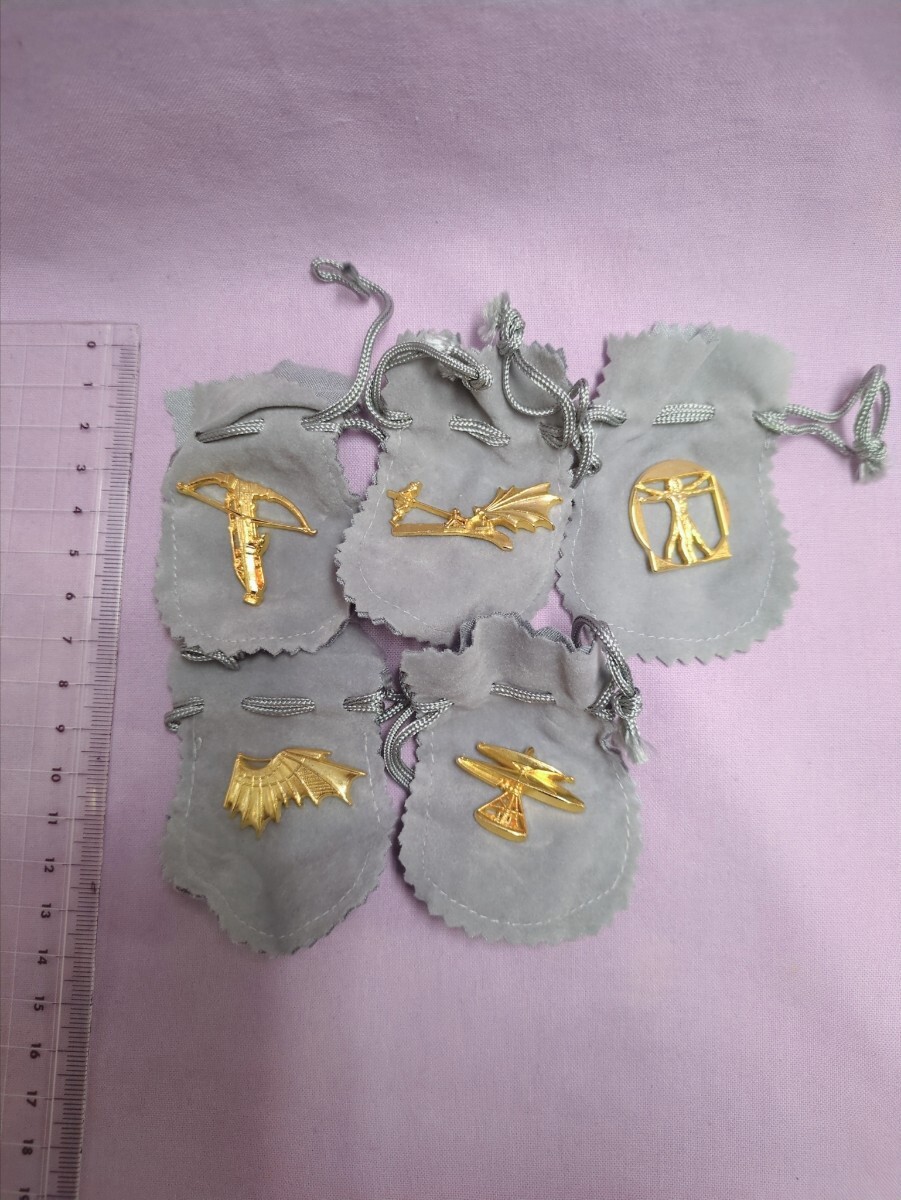- ビンテージ フランス製 ピンバッジ レオナルド・ダ・ヴィンチ 人体図 人工翼 ピンズ 金 ゴールド レトロ 弓 飛行船
