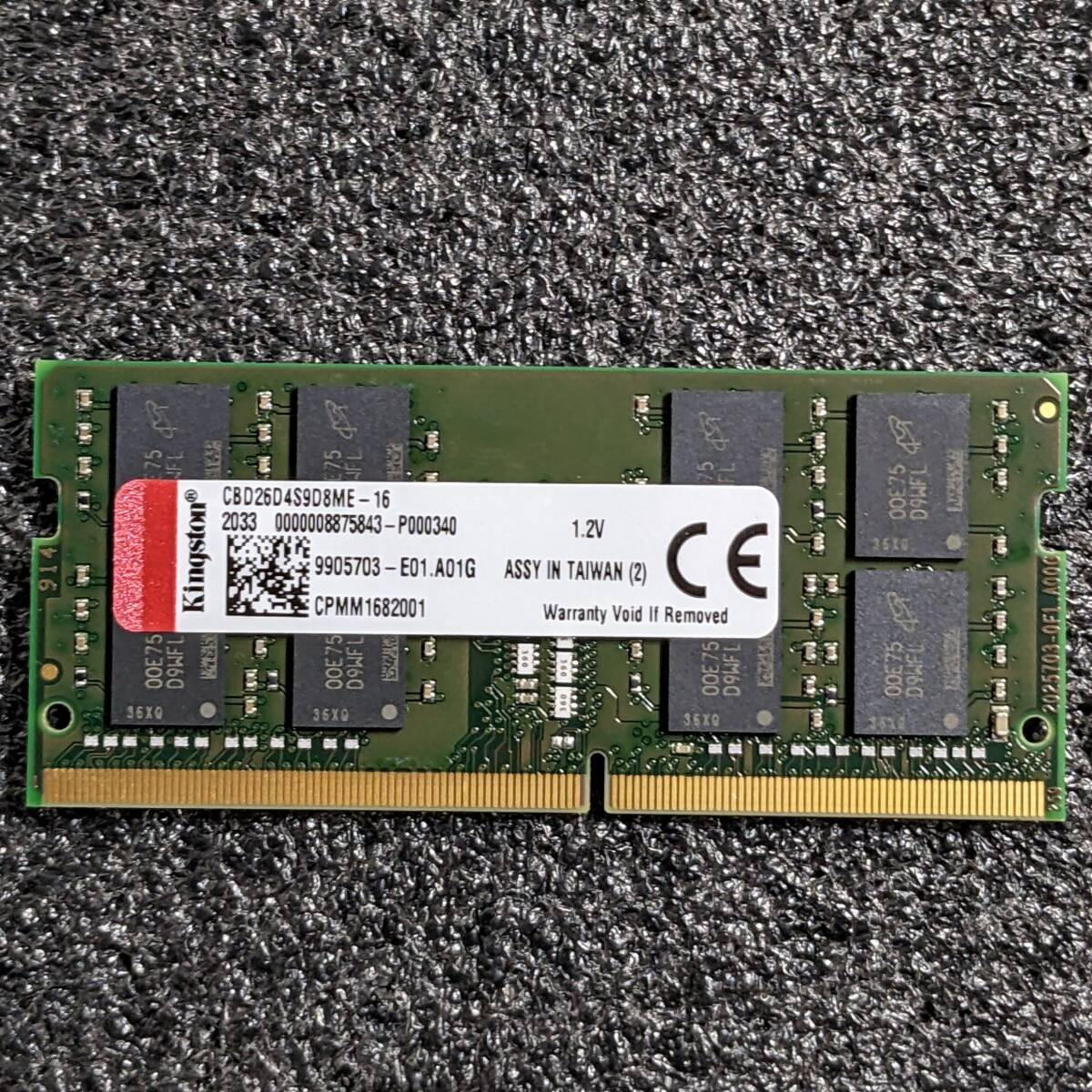 - 【中古】DDR4 SODIMM 16GB1枚 Kingston CBD26D4S9D8ME-16 [DDR4-2666 PC4-21300]