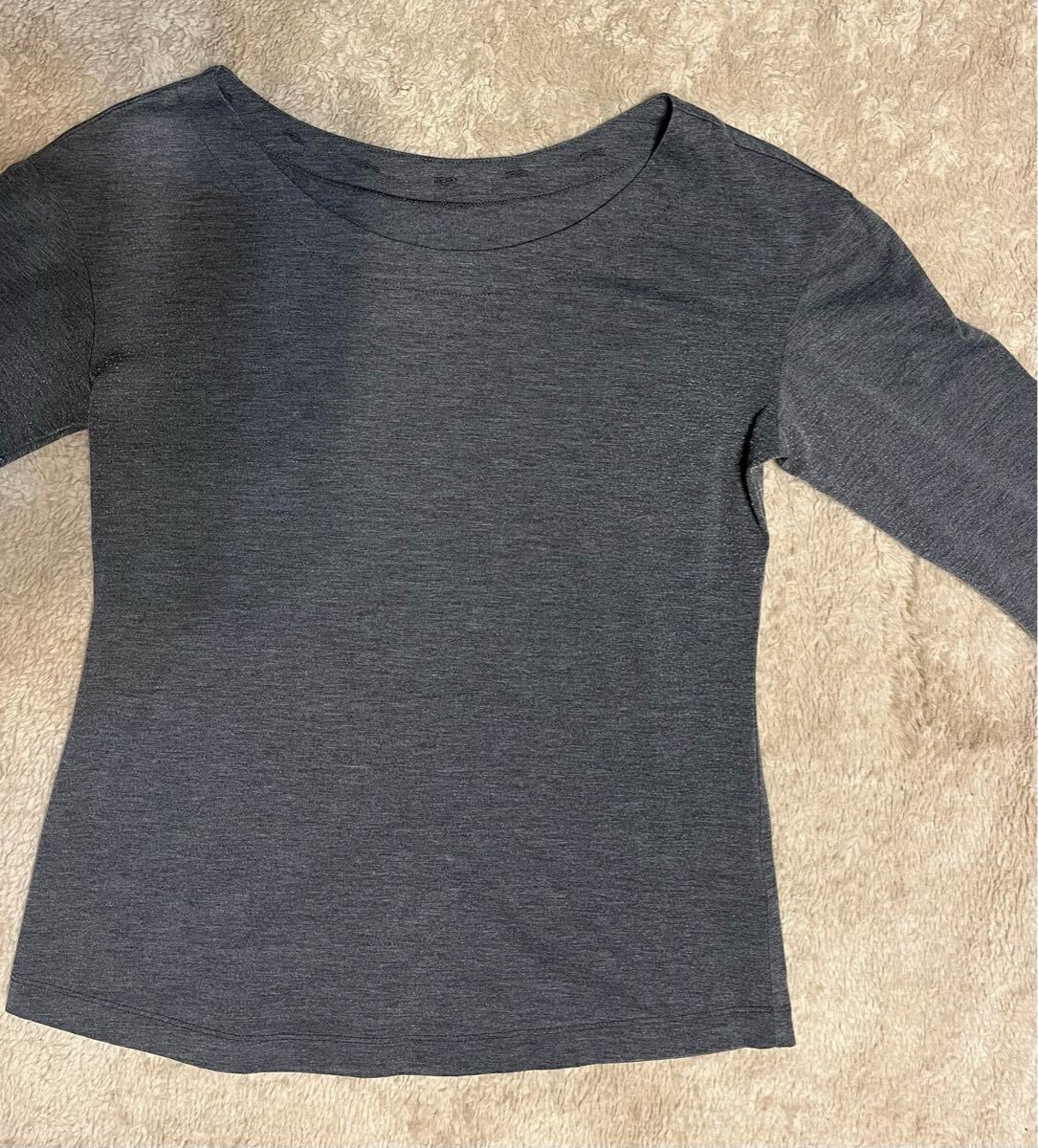 - 七分袖カットソー ダークグレー 七分袖Tシャツ ボートネック カットソー グレー トップス 半袖カットソー