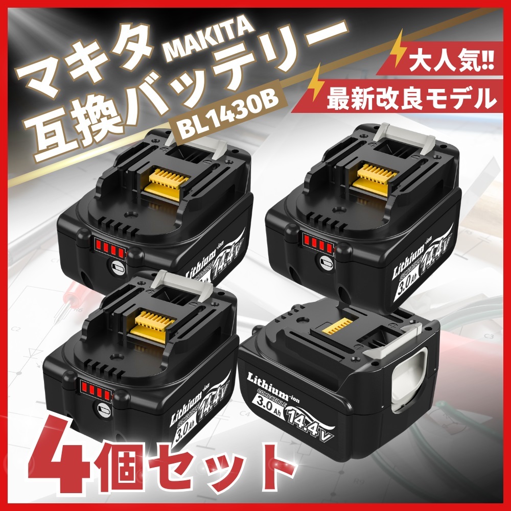 - (A) マキタ バッテリー BL1430B 互換 14.4V 3000mAh 4個セット BL1430 MAKITA BL1430B BL1450 BL1450B BL1460 BL1460B DC18RC DC18RA 対応