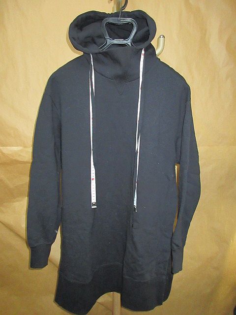 > ミハラヤスヒロ MIHARAYASUHIRO メジャー紐 フード サイドスリット ロング パーカー 黒