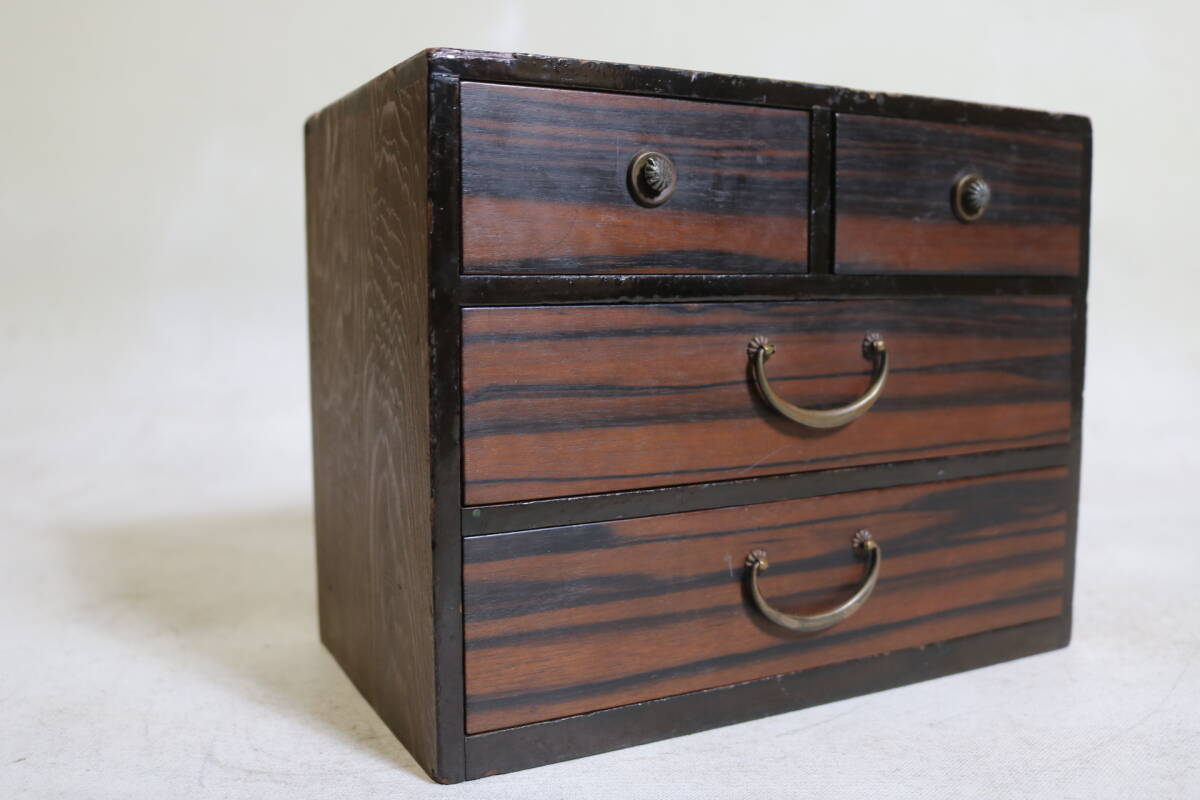 - 【伊董】B190.アンティーク!レトロ! 黒柿!古い小抽斗山形県庄内地方黒柿張り針箱小物入れ #小引出し #古民藝 #古道具