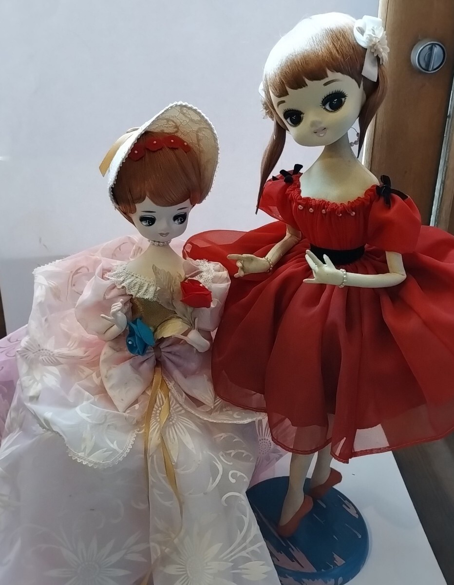 - 昭和レトロ さくら人形 当時物 ポーズ人形 2体 赤 ドレス ワンピース ドール 人形 置物 ビンテージ レトロ コレクション インテリア