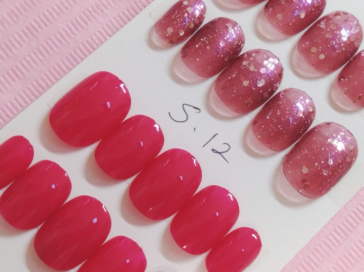 - Sサイズベリーショート・ローズくすみワインレッドクリアホログラムラメ2点セットつけ爪ワンカラー