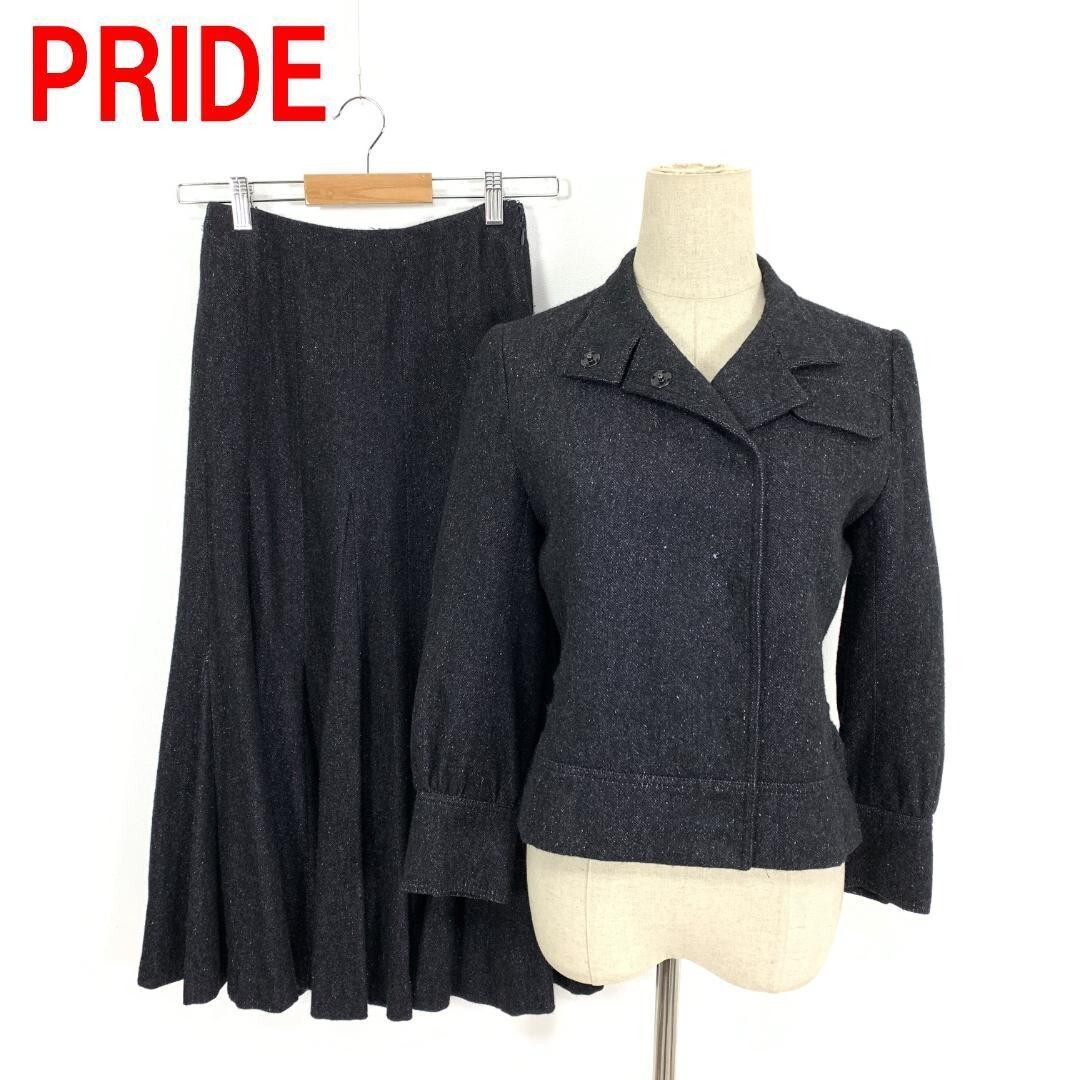 - A5292 プライドスカートスーツ ウール シルク カシミヤ グレー ジャケット ロングスカート 裏地あり フレア M相当