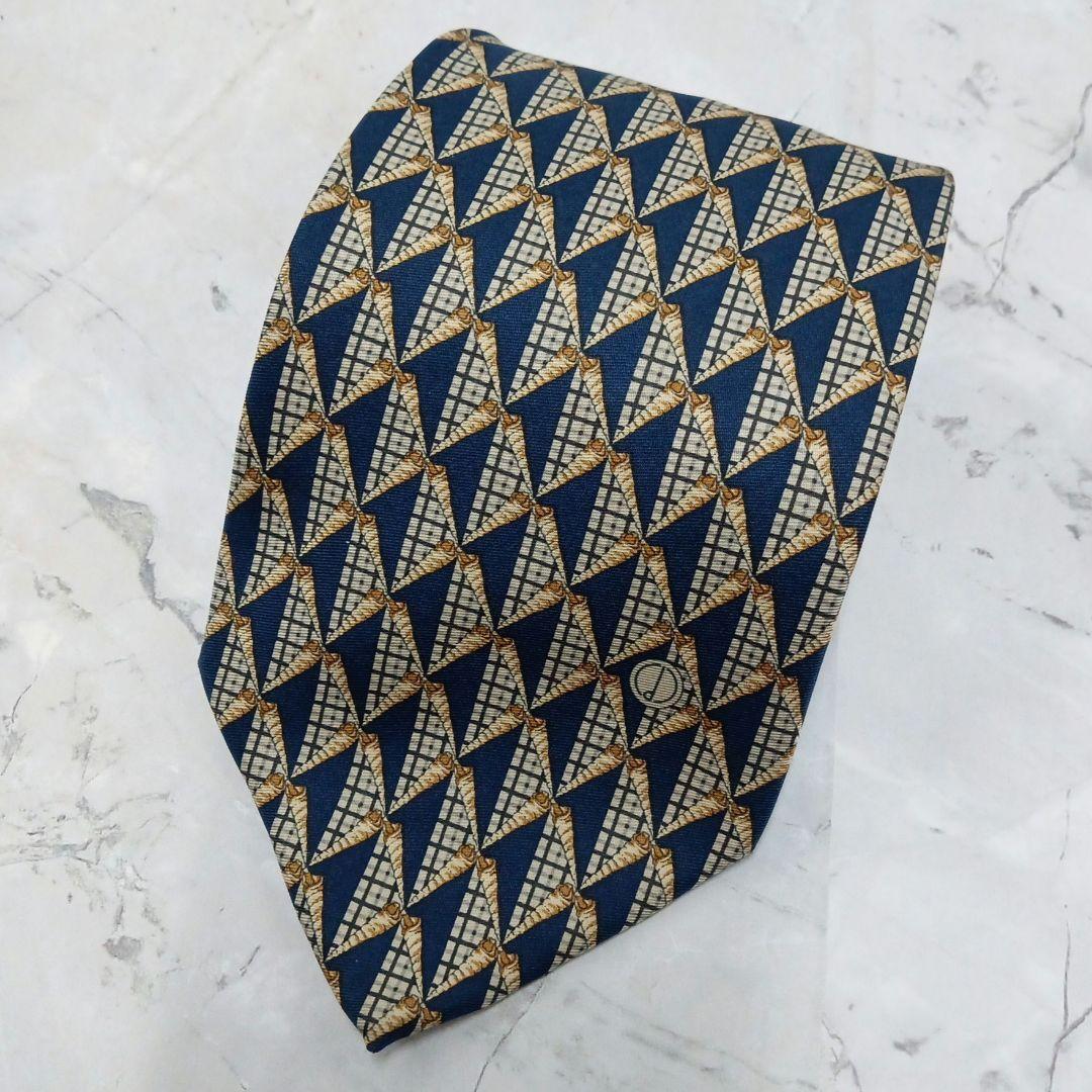 - ダンヒル ネクタイ 青 白色 総柄 絹【n589】